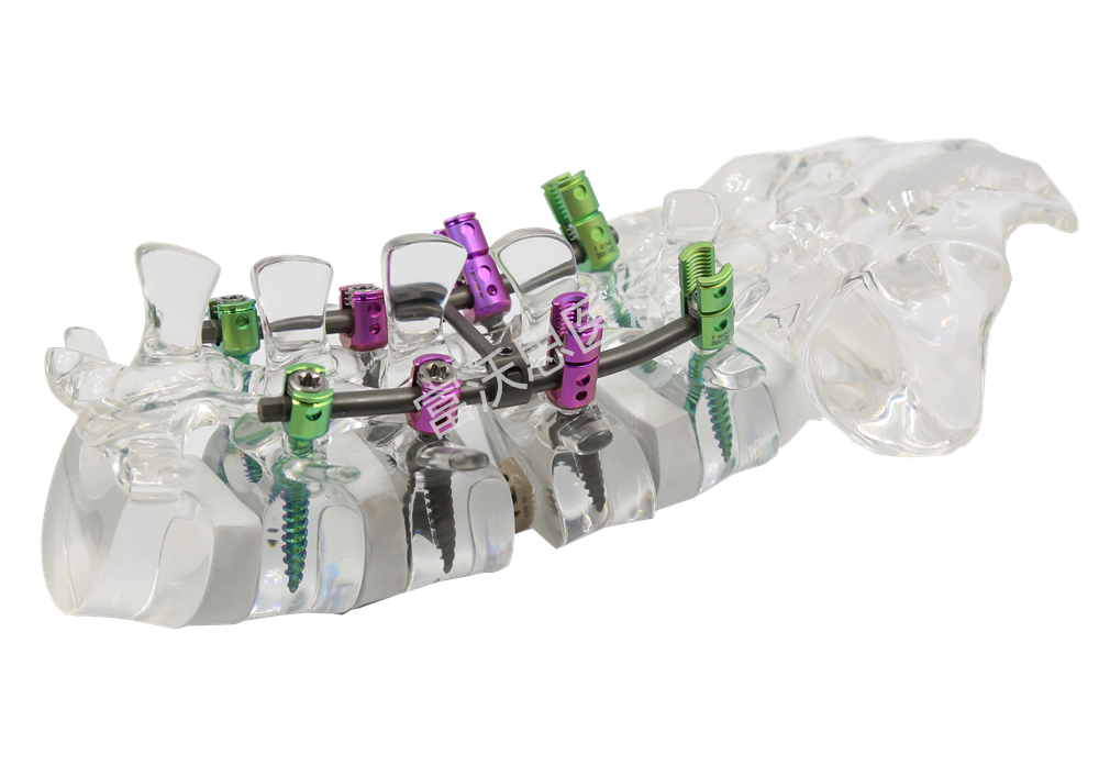 胸腰椎釘棒內(nèi)固定系統(tǒng)由椎弓根釘、長(zhǎng)尾椎弓根釘、短尾椎弓根釘、微創(chuàng)萬(wàn)向椎弓根釘、棒、橫連裝置、 鎖緊螺帽、固定塊和金屬鉤等組成。適用于脊柱胸腰椎骨折、滑脫、退行性變、畸形、椎間盤(pán)突出、椎管狹窄等內(nèi)固定。